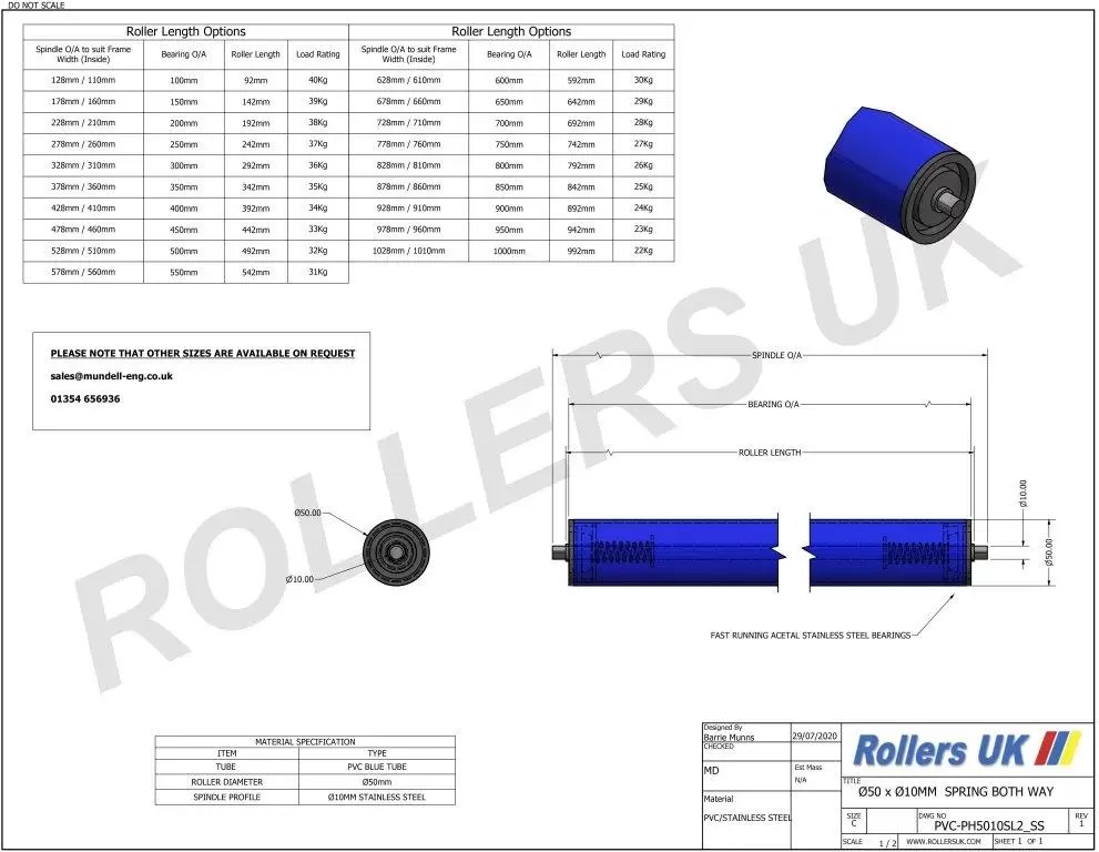 PVC-PH5010SL2_SS – Ø50 x 10mm Sprung Both Ends